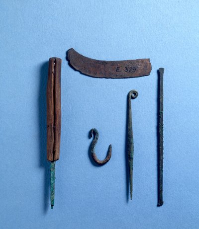 Chisel, awl, knife and fish hook...
